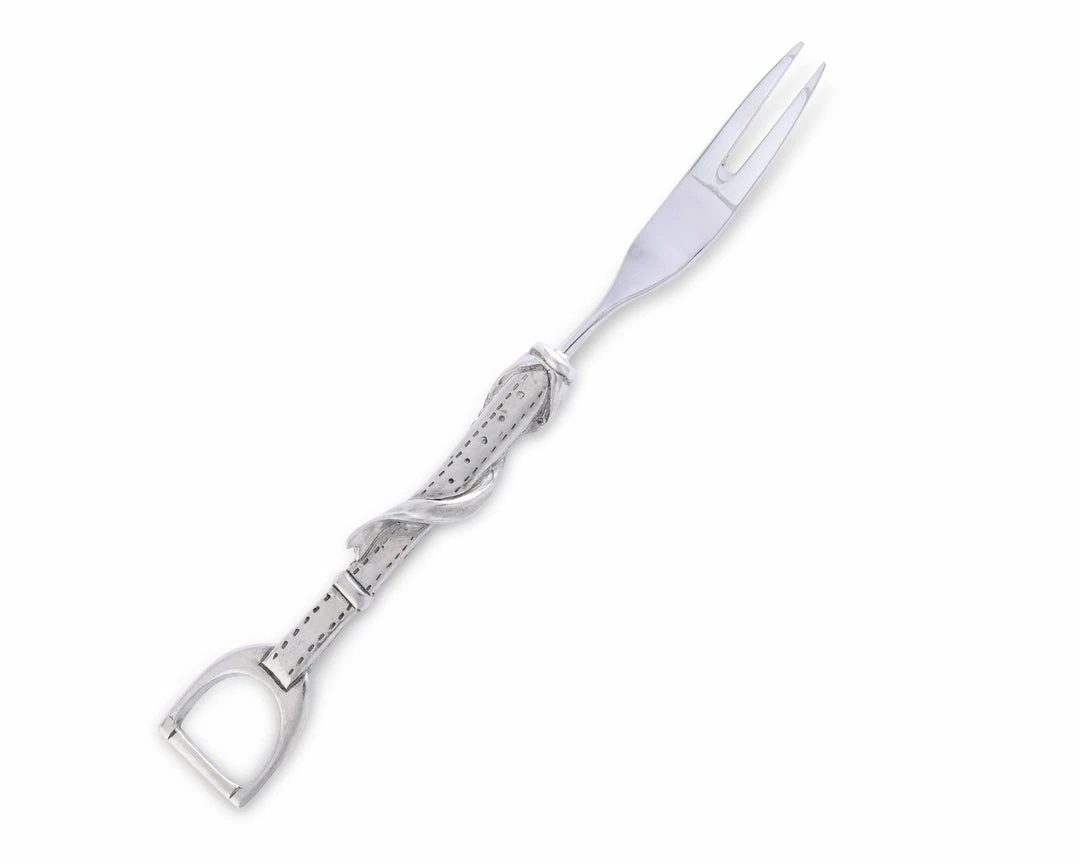 Make your appetizers irresistible by serving them with Vagabond House’s Stirrup Hors d’ oeuvre Fork. The piece’s pure-pewter handle features a leathery-patterned strap with notches, a belt loop and thin bands wrapping around the design. A realistic rein ring also extends off of the handle as an additional accent.