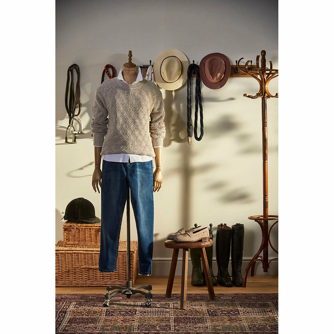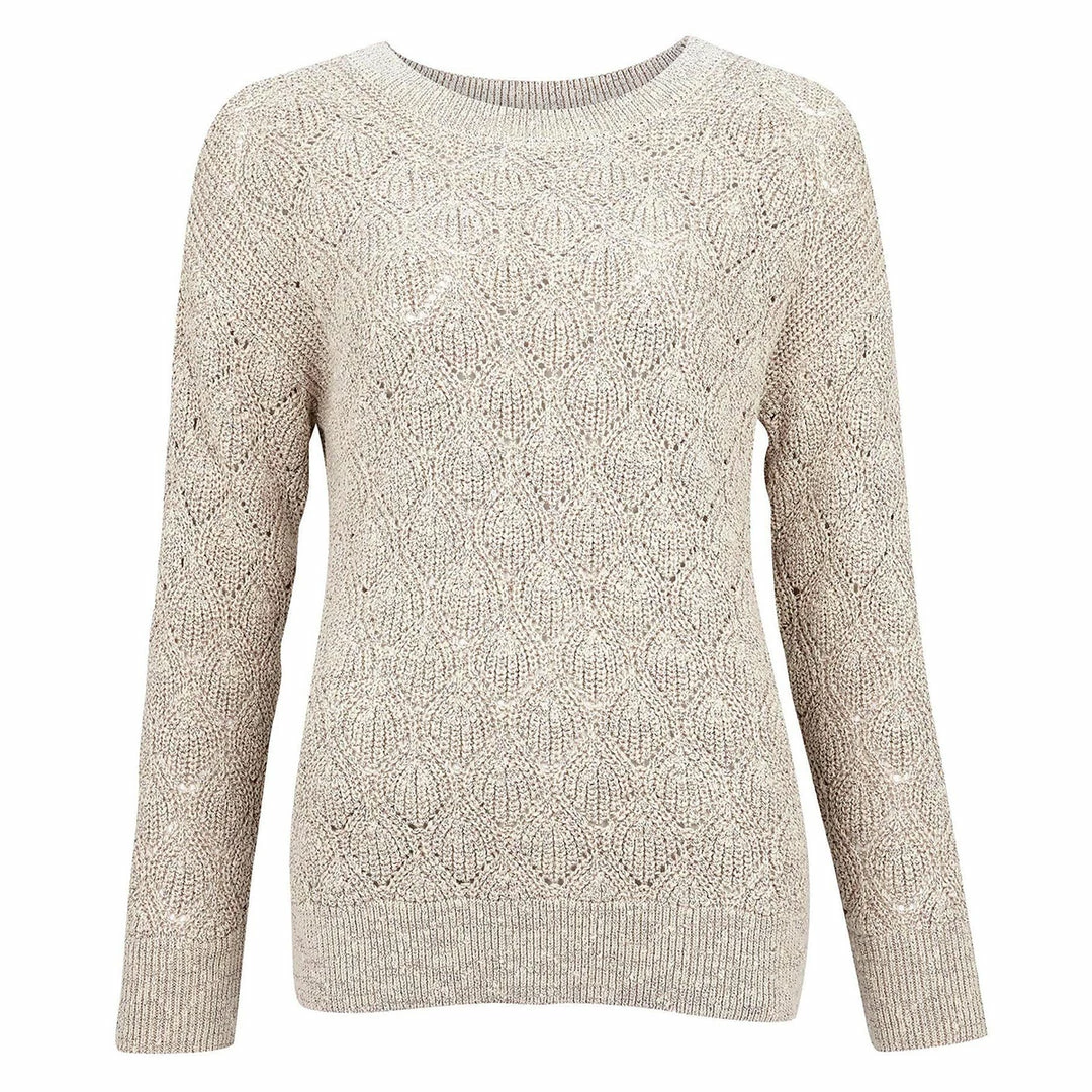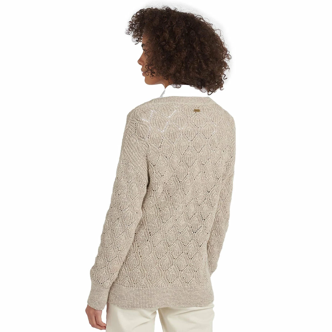A versatile layer for the transitional months, this pretty sweater is knit to a lace pattern for a tactile texture. Styled with ribbing to the neckline, cuffs and hem for the perfect fit, it’s finished with a discreet Barbour logo bar to the back of the neck.