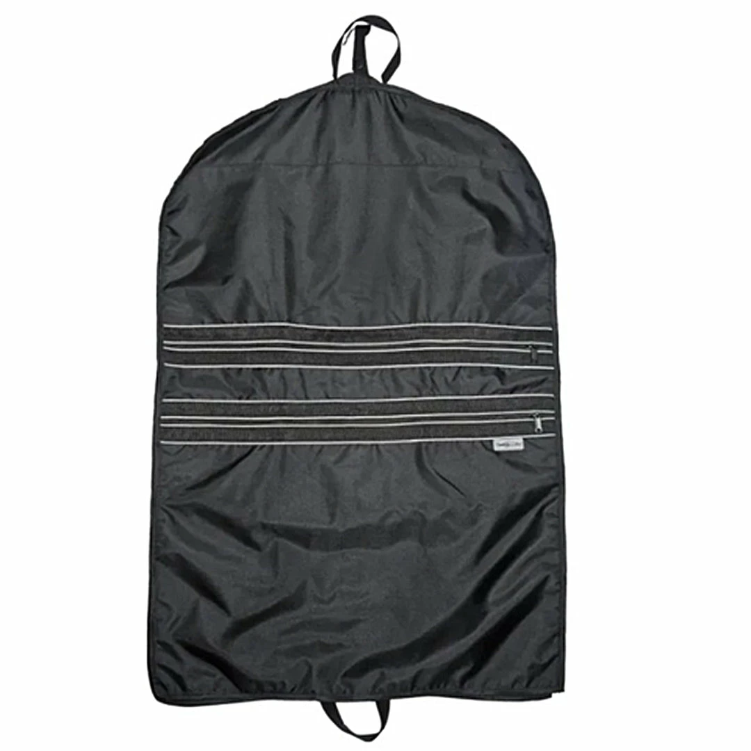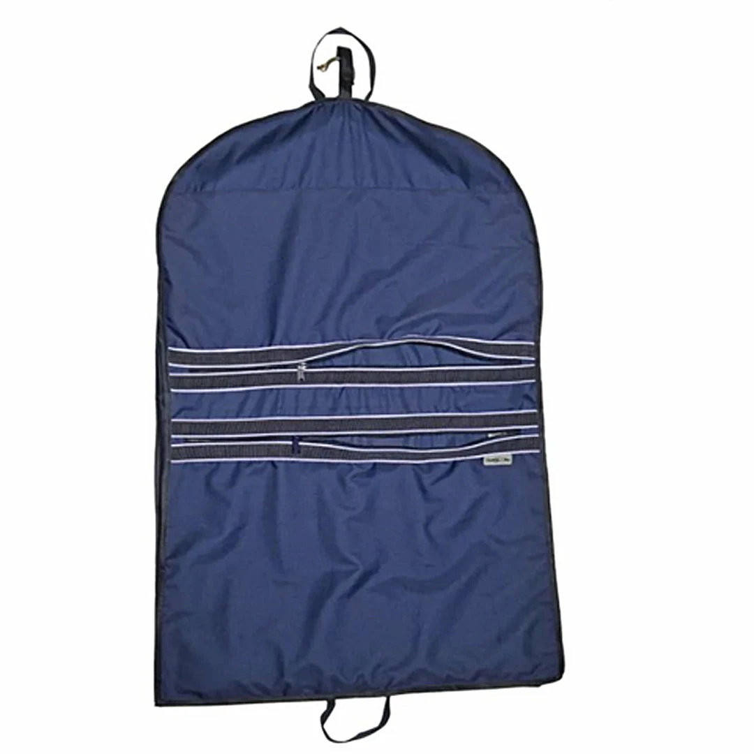 The Chestnut Bay 3″ Gusset Garment Bag will keep your show coat and 3-day’s worth of attire protected from whatever the weather may bring. Dust, lint and hair GONE! This bag has you covered with 3 spacious pockets to hold all of your travel and show essentials. Features include a longer length, 3″ side gusset, taped seams, full length front entry zipper, 2 full width zipper pockets to hold important apparel and gear, interior mesh zipper pocket to hold intimates and sundries, top snap loop to secure hangers and top and bottom handles for easy transport.