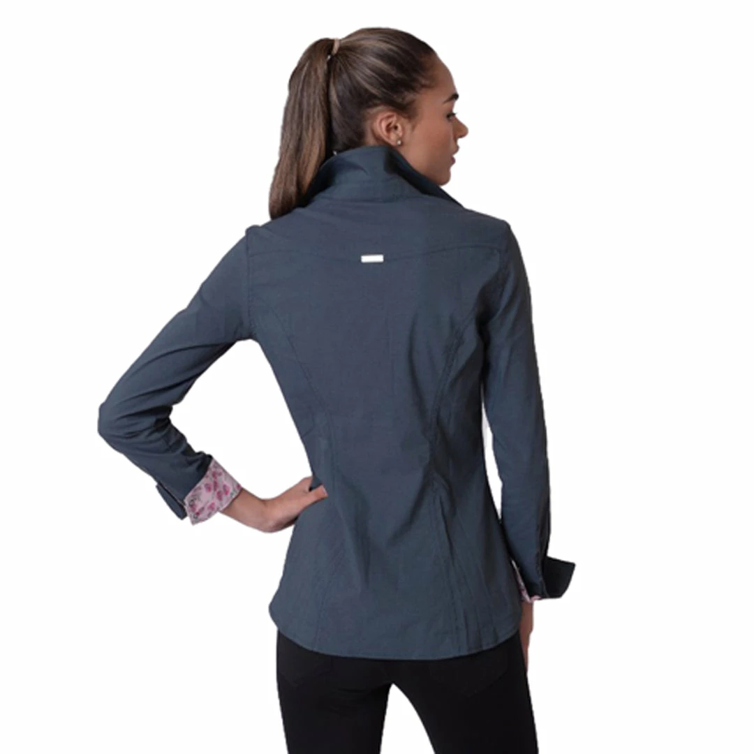 Perfect fit and a mesh lined back yoke add cooling airflow. Beautiful Liberty® London prints add a touch of equestrian class. Key features include a no-show hidden low profile YKK zipper along a no-show snap packet for a smooth gap free front, no-show collar and cuff snaps for a polished show look, shirttail hem and princess seam tailoring for a classic feminine show fit.