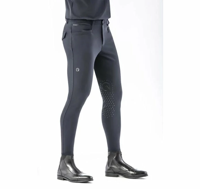 Riding breeches for men with front pockets and pocket detail with flap and button on the back. Superior performance and style are guaranteed, thanks to the perfect ergonomic cut developed by Italian designers and the use of the best technical materials for sports. The revolutionary fabric, 100% jersey made in Italy, creates a perfect fit while the 4-way stretch fabric ensures unrestricted movement, support, and shape retention to give you never before felt comfort. Highly breathable the breeches offer increased contact with the horse while riding. Once you wear these breeches once you’ll be an Ego 7 convert.