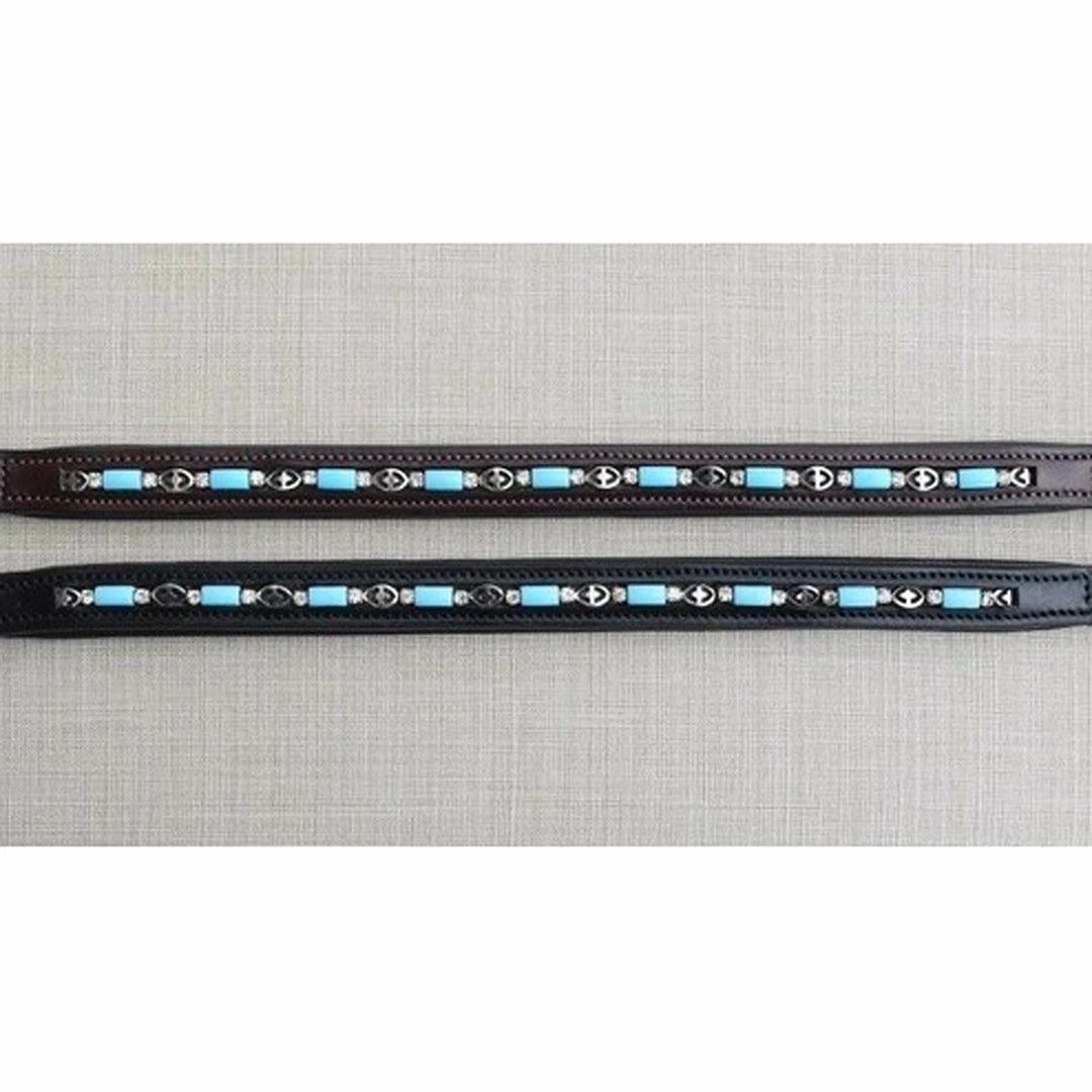 Browband has turquoise color beads and Crystal insert, with Silver accents and is padded.