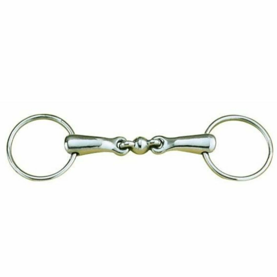 We love this Centaur® Jointed Berry Loose Ring Bit because it is a gentle effective bit and the jointed berry helps your horse accept the bit. Great as a training bit. Â