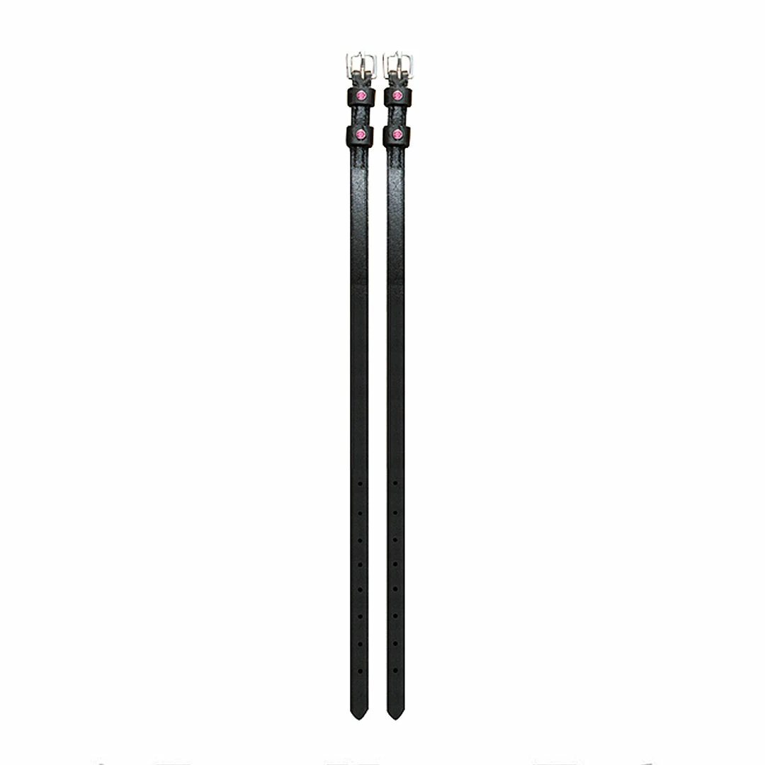 Black leather spur straps with choice of 4 different color crystals. Crystals are located on the keepers.