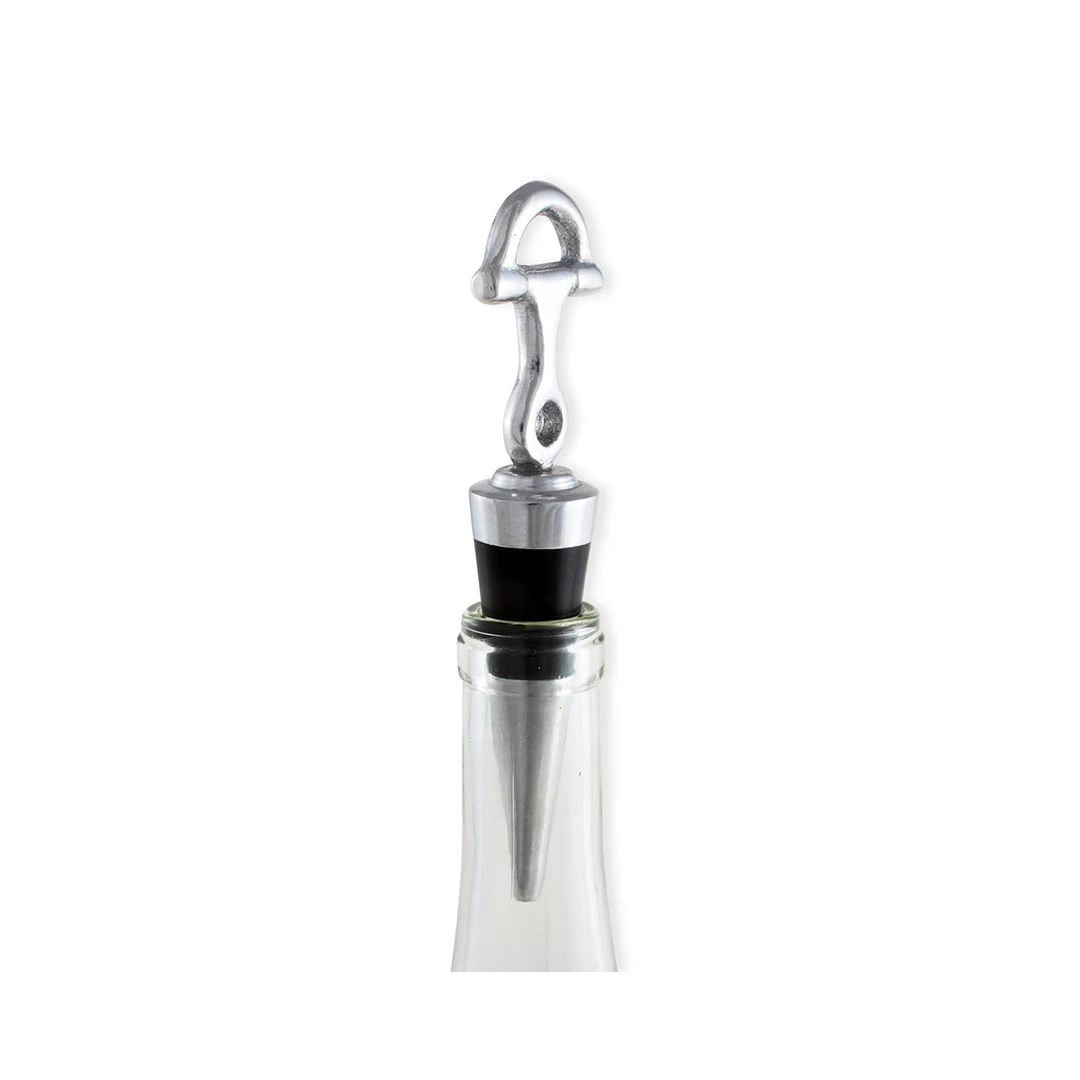 Maintain the quality of leftover wine with this Arthur Court Equestrian bottle stopper. Handmade from a premium signature aluminum alloy and shaped into a horse-inspired design, this stopper is both beautiful and functional. The rubber gasket creates a tight seal to preserve everything from a rich cabernet sauvignon to a light pinot grigio without excess oxidation, and the tapered point slides smoothly into the neck of your unfinished bottle. At 5.5 inches long, this piece slips easily into a server’s apron so you can keep it on hand during parties. Whether you’re hosting a fundraiser for your local stables or celebrating the acquisition of a new Arabian stallion with a group of friends, the bit-shaped handle sets the right tone for your event. This bottle stopper comes packed in a gift box for convenient wrapping and presentation.