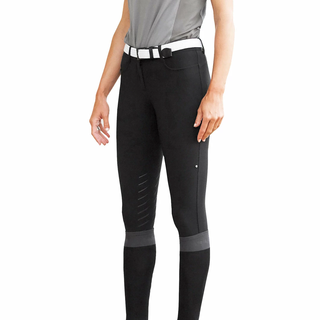 Women’s knee grip riding breeches in the new favorite B-Move performance fabric. These classic, contemporary breeches are available in a wide variety of colors. Features include tech knee grip system and quick drying qualities.