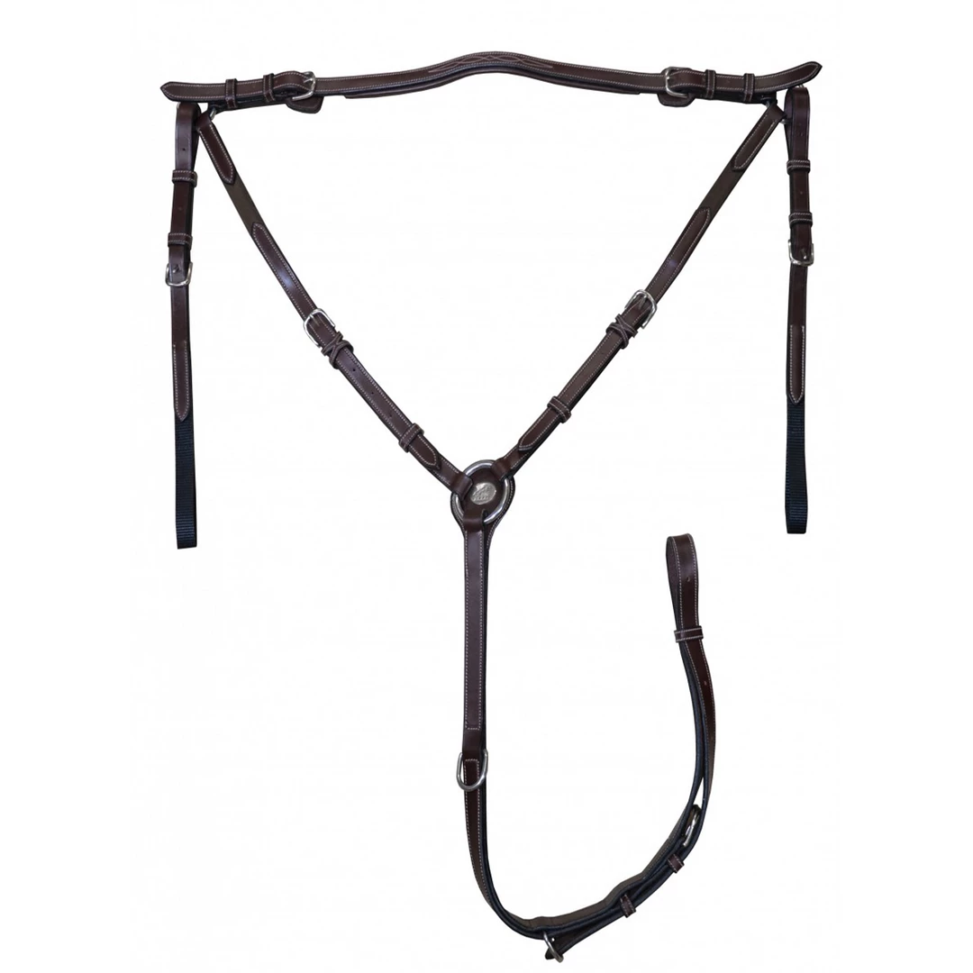 Matches the Monday Bridle and with the fancy stitching, the breastplate must be attached to the girth straps. The breastplate helps keep the saddle in place so it doesn’t shift back on the horse’s back.Â