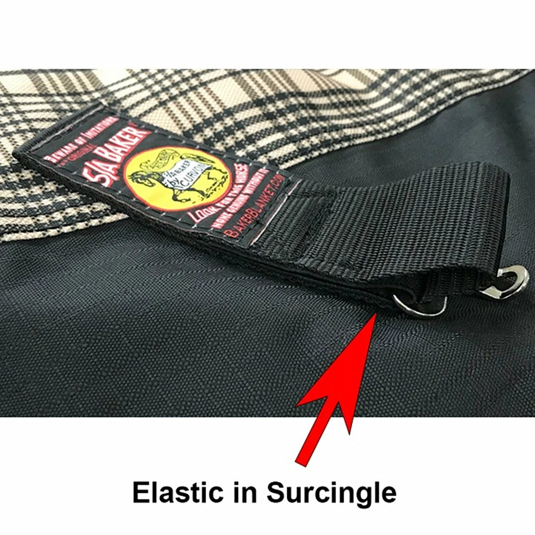 This economical version features gusseted shoulders, bias black surcingles and trim, tail flap, stainless steel hardware and front buckles. The outer shell is a 600-denier polyester Baker® plaid with an 8″ wide black polyester strip along the bottom of each side of the sheet between the Baker® plaid and trim. A waterproof/breathable membrane bars water penetration yet allows water vapor from perspiration to pass through to the outside.