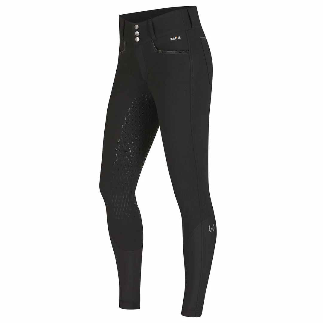 Confidence-inspiring coverage with a higher rise and an impressive amount of stretch, this stylish, tailored breech takes riders from stable chores to clinics in comfort. Four-way stretch-woven Flex&Sculptâ„¢ fabric is combined with an inner power mesh tummy-control panel and a three-inch waistband to provide compression and hold without sacrificing freedom of movement. Silicone Kerrit Sticksâ„¢ flex and add supple grip, while the stretch knit calf panels ventilate. Contoured back pockets for easy insaddle access.