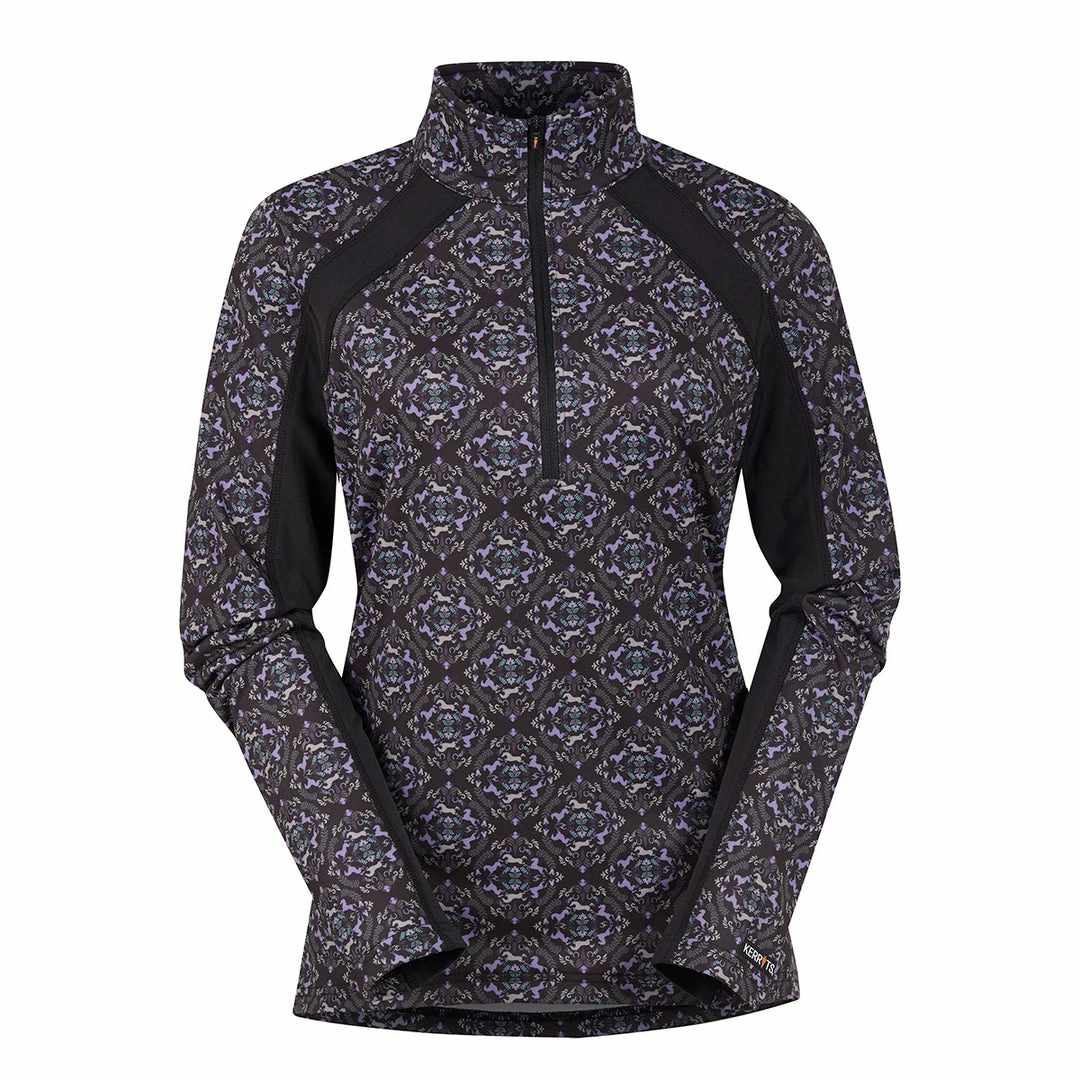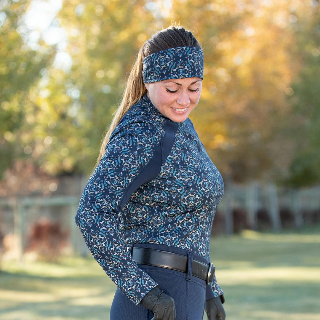With a smooth exterior designed to shed hay, dirt, and horsehair, this technical top knows what it means to be “barn-worthy.” A contoured fit with flat-lock seaming makes this piece easy to layer, while the super-stretchy fabric with a lightly brushed interior is cozy next to the skin. A quarter-zip neck allows for easy ventilation.