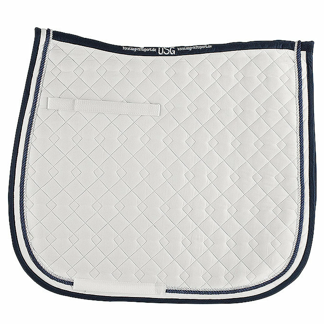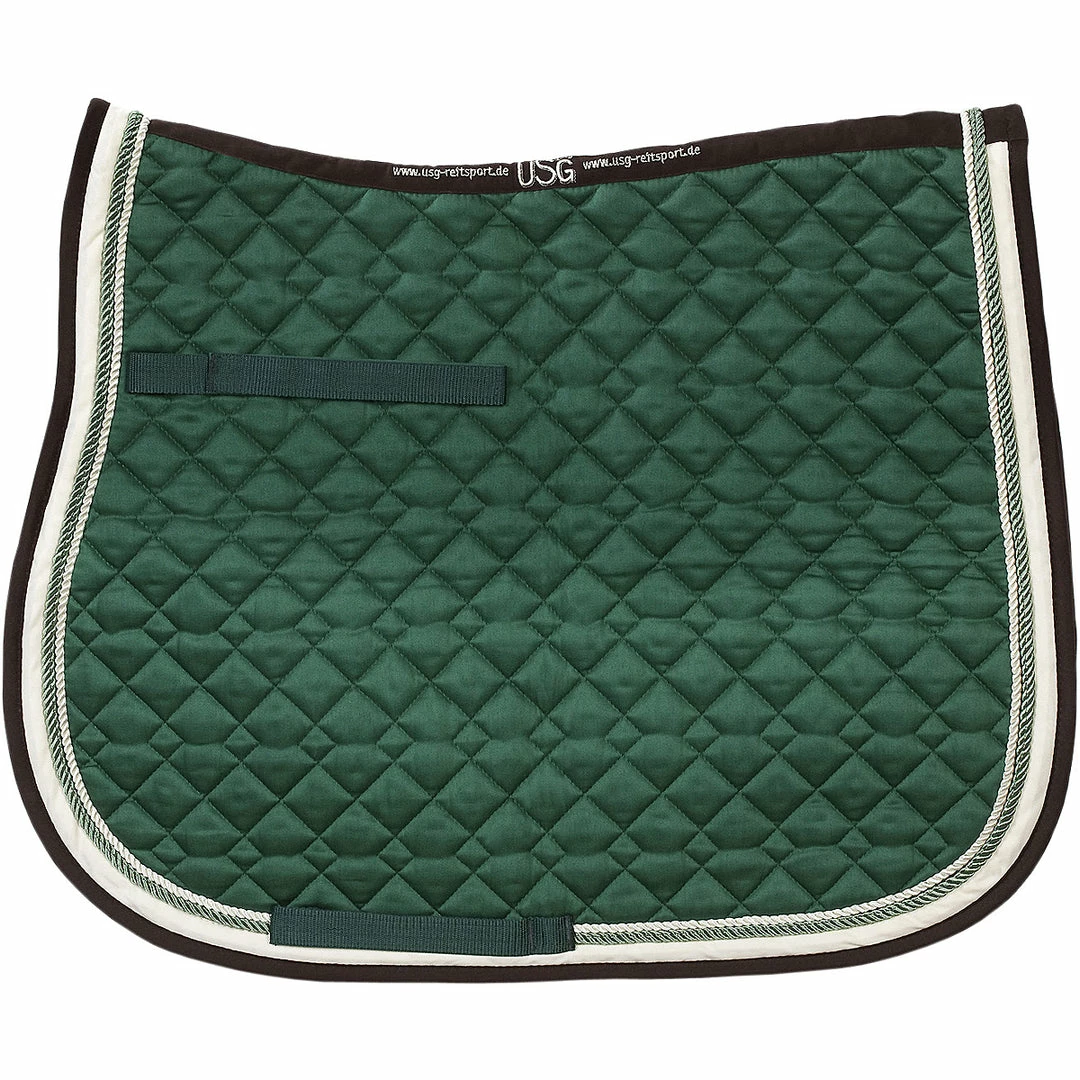 All Saddle Pads by United Sports products Germany (USG) are made of 100% cotton fill and quilted body. Features include elegant rolled piping and trim in contrasting colors.