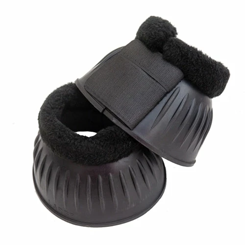 The pure rubber ribbed bell boots are perfect for horses that chafe easily. These bell boots are made with a fleece-lined top and double hook and loop Velcro closure.