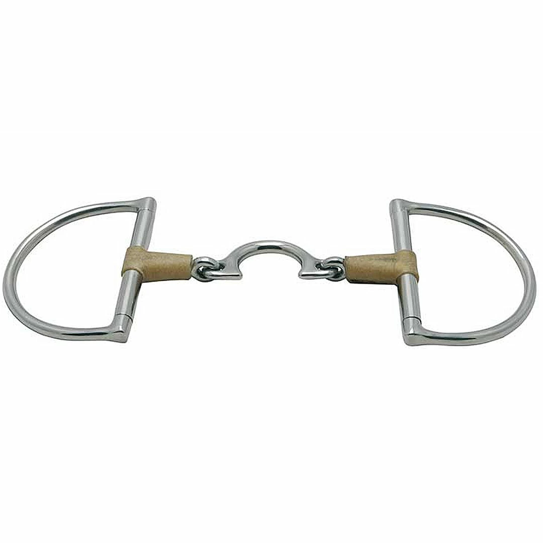 We love this Metalab jointed rawhide leather with quarter moon d-ring snaffle bit because of the durable material.