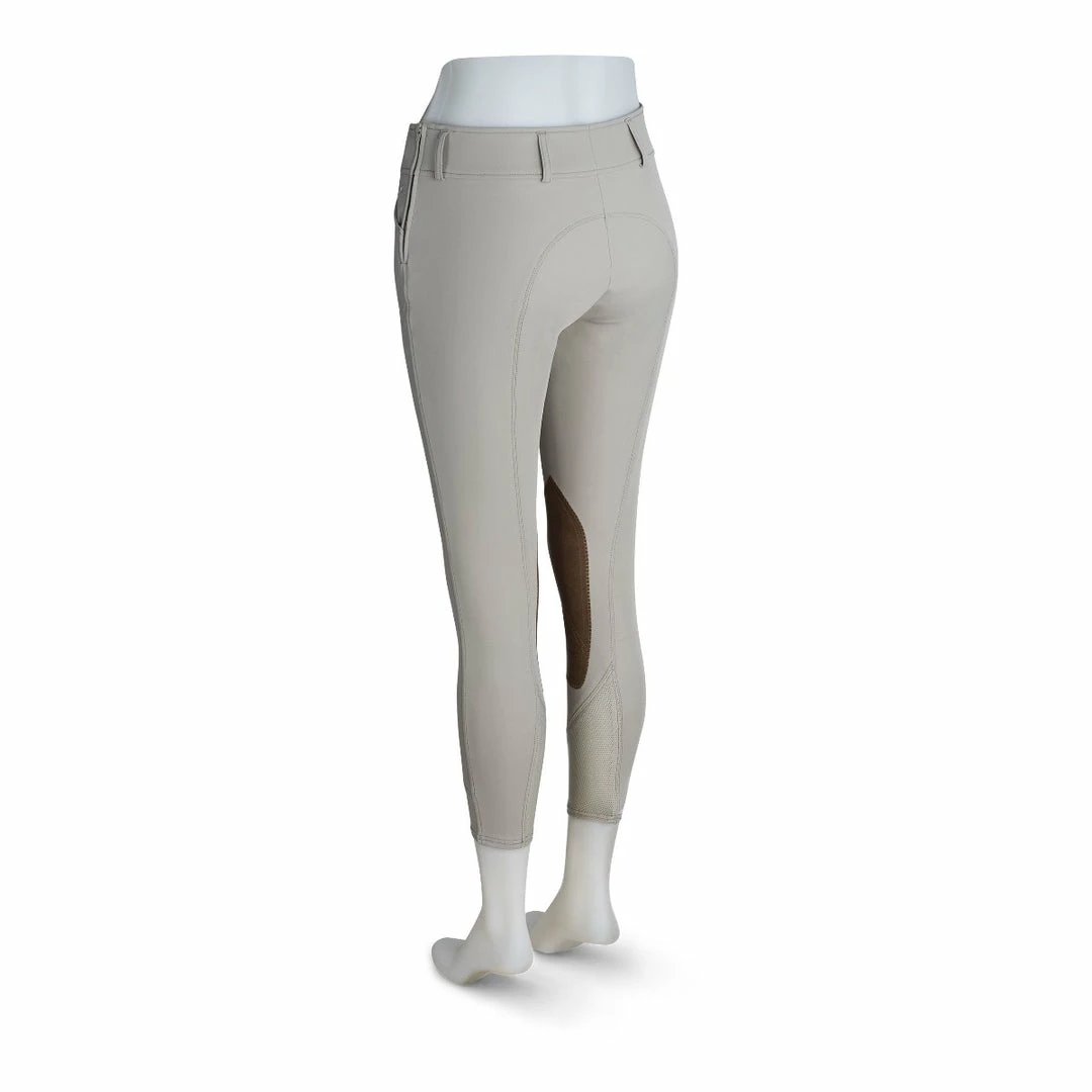 The mid-rise side zip Belmont model euro seat breech is the pinnacle of fit and comfort, featuring a premium quick dry and stretch fabric that provides amazing hand-feel, sculpt, and coverage. The fabric-covered interior waistband and mesh lower leg panels provide ideal comfort. Premium Clarinoâ„¢ knee patches are naturally supple and breathable while presenting the elegant look of real suede, yet it can withstand intense abrasion. R.J. details on the front closures and pocket complete the design.