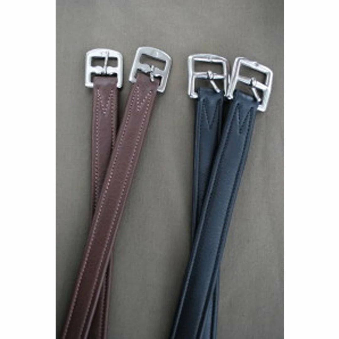 The Red Barn Calf Lined Leathers feature soft calf skin leather wrapped over a core of webbing, for a tactile, yet durable leather. The Nylon webbing keeps these leathers from stretching, and they are finished with a low profile buckle to eliminate bulk under the rider’s legs. The calf lined leathers feature 22 holes placed 5/8” apart for maximum adjustment.