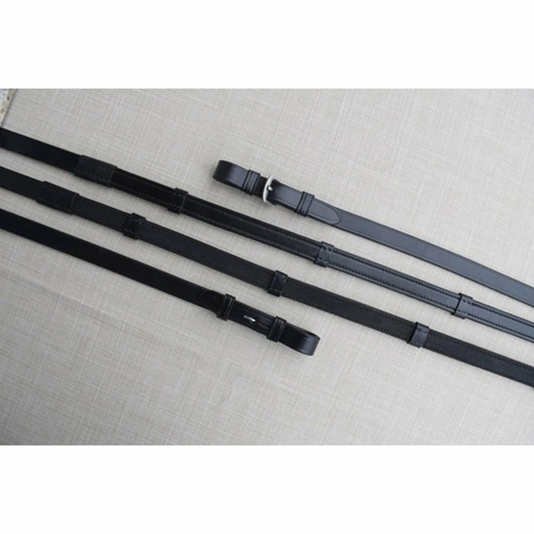 These 5/8″ Easy Grip Reins are a rubber lined dressage rein with stops. Â