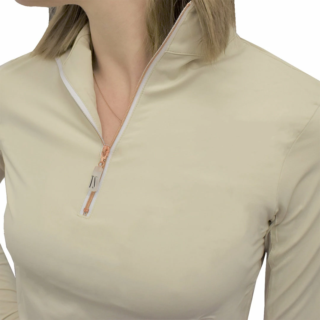 Long sleeves and a high neck keep your skin protected from the sun’s harmful rays, while mesh panels under your arms help keep you cool.