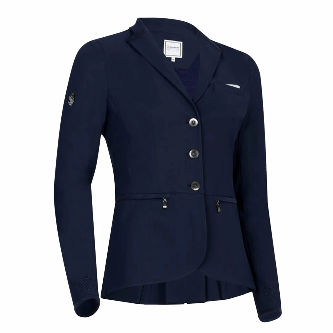 The Victorine competition jacket is designed to provide comfort and technical performance to riders. The tailored fit and asymmetrical cut (front is cut shorter than the back) ensures a perfect fit, elegance and comfort.