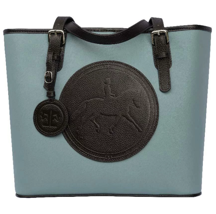 The James River Carry All ~ our most versatile and durable creation yet. This generous tote that does “carry all” is named in tribute to Jill’s father, who attended every show and the start of every hunt. Featuring scratch-resistant Saffiano leather exterior, this handbag stands firm on carrying daily essentials for busy barn days, travel, or the mobile office. The roomy scarlet interior contains pockets for smart phone, key fob, large zip pocket and tablet compartment with embossed leather logo. Completed with silver hardware and feet, embossed with the discipline of your choice in pebble-grain leather in contrasting color.