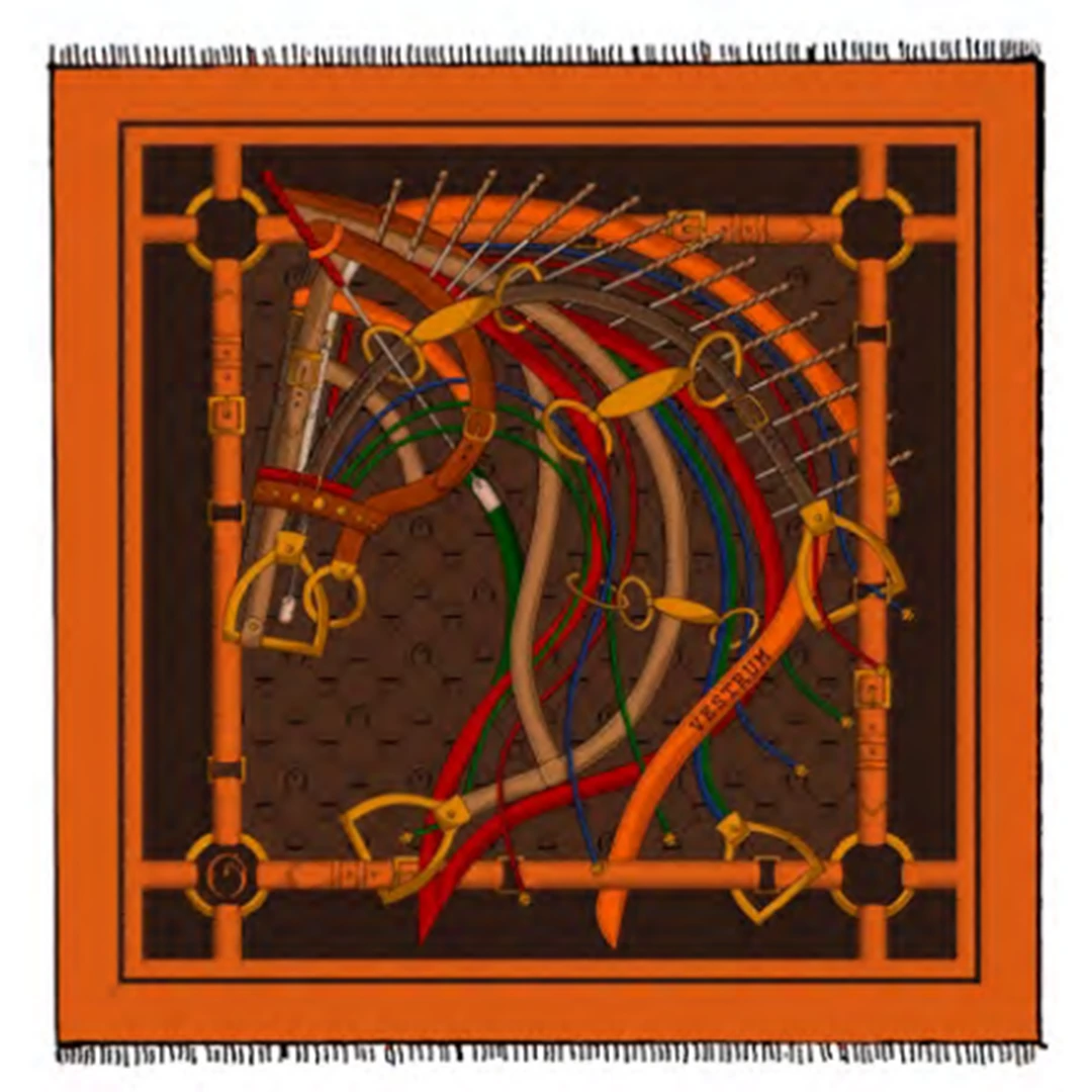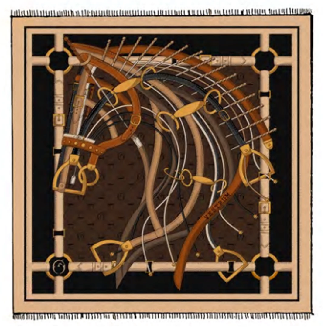 Elegant 100% superfine cashmere shawl emblazoned with original equestrian pattern.Â