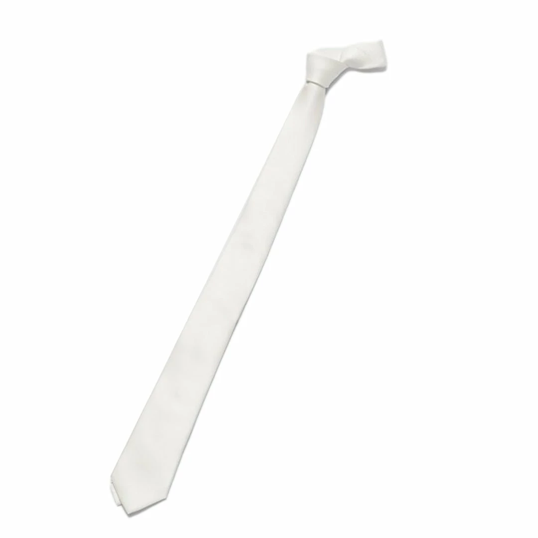 White polyester show tie with Vestrum logo.