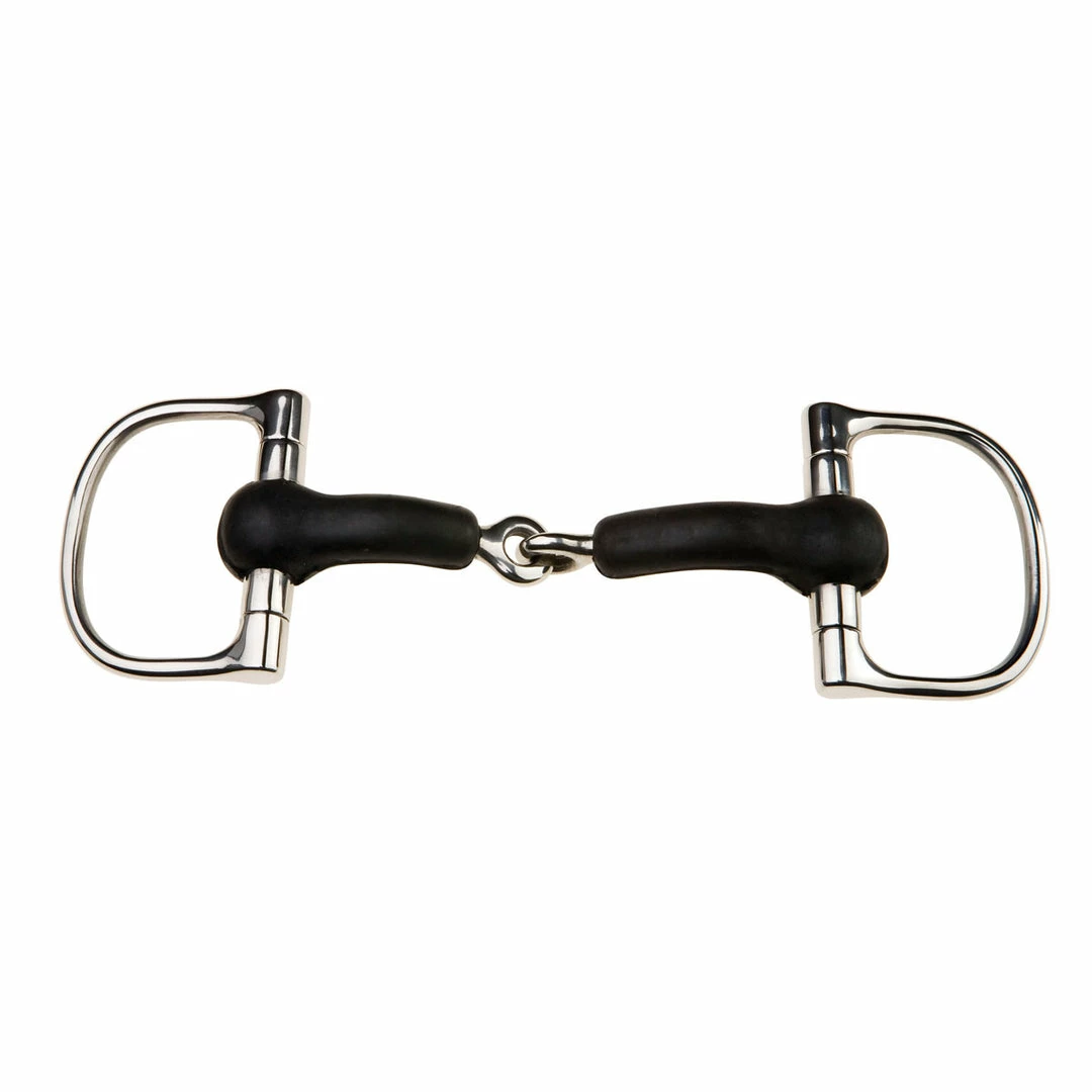 We love the JP Korsteel Rubber Mouth Jointed Dee Ring Snaffle Bit because unlike a standard jointed snaffle’s nearly straight mouthpiece, JP bits have a curved shape that eliminates the interference that conventional bits can cause.