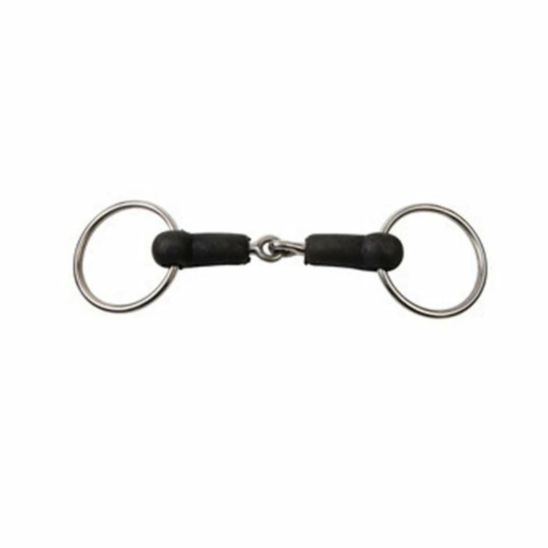 We love the Korsteel Hard Rubber Jointed Loose Ring Snaffle Bit because the hard rubber mouth is a different tasting alternative to stainless steel, which encourages the horse to accept the bit. Â