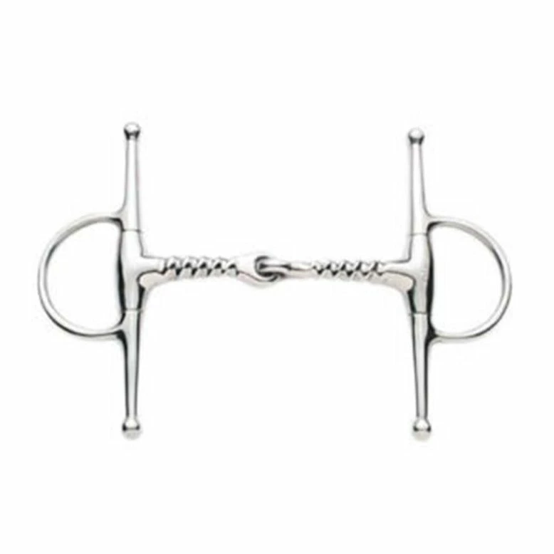 We love the Korsteel Stainless Steel Corkscrew Mouth Full Cheek Snaffle Bit because the full cheek snaffle has narrow arms which project above and below the rings, preventing the mouthpiece from sliding in the horse’s mouth and to emphasize the tuning aid. The corkscrew design puts pressure on the tongue, bars, lips, and palate, offering more control over stronger horses. The single joint applies a nutcracker action that applies pressure to the tongue, the bars of the mouth, and the horse’s palate.